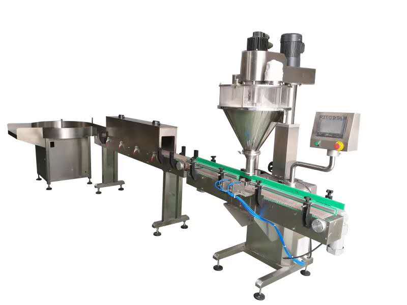 1.全自動(dòng)粉末瓶裝灌裝生產(chǎn)線:理瓶機(jī) →自動(dòng)上料機(jī) →單頭粉末灌裝機(jī) →旋蓋機(jī)(或封罐機(jī))→瓶口鋁箔封口機(jī) →貼標(biāo)機(jī) →噴碼機(jī) →鏈板輸送帶 →裝箱平臺(tái),可以根據(jù)產(chǎn)品的要求選擇流水線配置